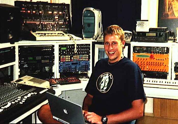 Tu sem priložil eno njegovo kr precej staro fotko (l. 2001), na kateri se lepo vidijo SE synthi (ATC-1, SE-1), pod njimi je Novation Supernova 2, na desni strani Waldorf (Microwase XT, Pulse), tista čudna škatla na vrhu je legendarni ARP 2600 (mašina stara 30 let), pred njo je TR-909, na mizici ima tud Virusa B in AKAI MPC2000, mixer je nek Mackie za monitorce pa nisem prepričan ali so Genelec ali Mackie. Imel sem tudi eno njegovo novejšo fotko na kateri se ne vidi skoraj nič, razn tega, da je v tistem trenutko lastil neke KRK monitorje, nevem točno katere.
