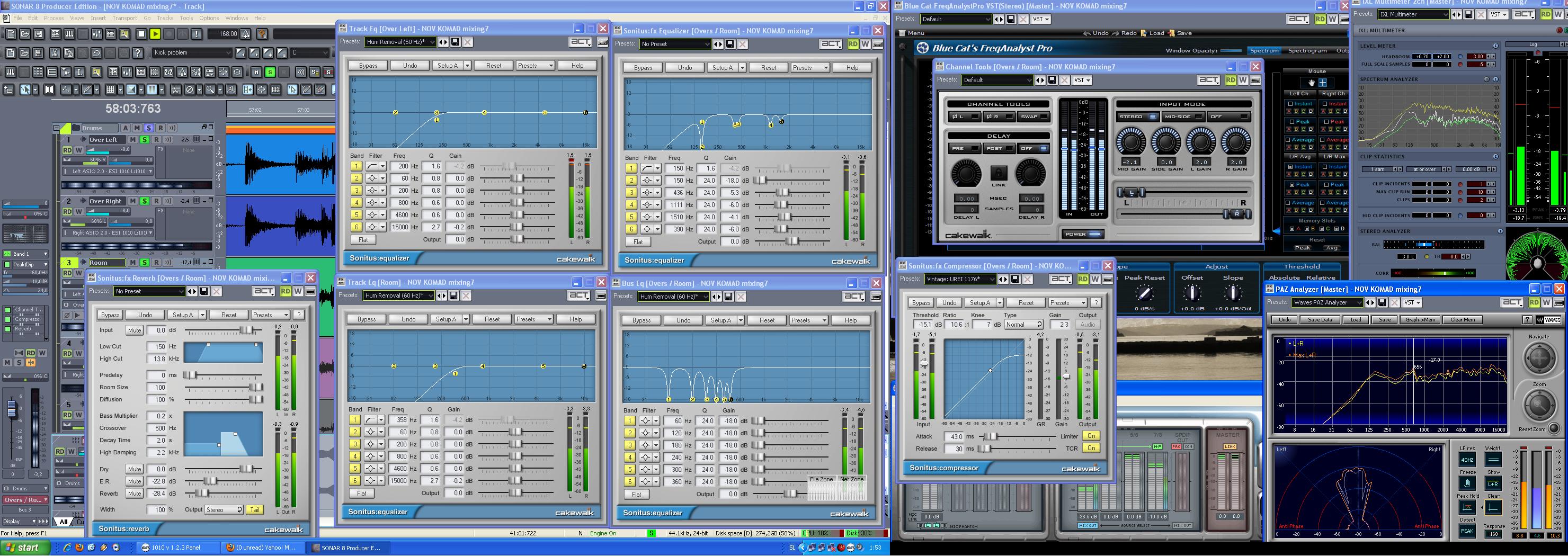Ja trenutno delam na enem mixu in je vse ql, ampak mi nekako slika Hight Hat-a v Over Head-ih ni všeč. Da bom bolj podroben... ko si narihtam prib. jakost celotnih bobnov, so činele ql... ko pa bobnar začne špilati po HH, pa je ta preglasen v OH.... če pa dam OH potiše, so pa spet ostale čineče prepotiho. Imam sicer neke ideje, kako se tega rešiti... ampak me zanima, kaj in kako bi se vi tega lotili?