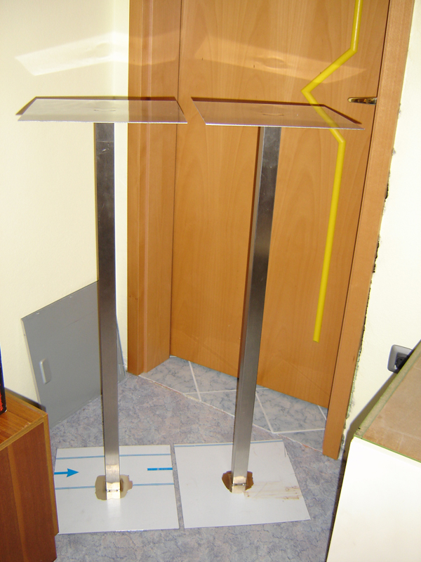 v spodnjo plosco stojala (podstavek) smo ze na zacetku izvrtali tri luknje, za pritrditev v tla, ampak jih se do danes nismo pritrdili, saj smo se kar nekaj casa ukvarjali z postavitvijo (kje bodo stala), medtem pa ugotovili, da so tudi tako stabilna in zaenkrat bo ostalo kar tako kot je.
