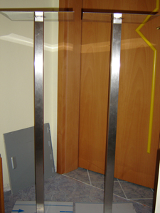 mi smo stojala naredili iz zeleza, ker je bilo ceneje funkcionalno pa ni razlike, saj smo jih dobro zascitili (prebarvali). v bistvu nam jih je sesvasal kolega, kateri dela z rostfrajem in zelezom. (on nas je tudi odvrnil od rostfraj izvedbe in danes vidim da je imel prav, saj tako je sla razlika v denarju za druge stvari...)