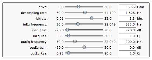 The Bitsmacker is digital distortion swiss army knife for adding that certain digital crustiness to your pristine audio signal. Can simulate vintage samplers, classic video game systems, and other lo-fi paraphenalia. At extreme settings, it warps your audio with power you can't get from a stomp box or full stack.